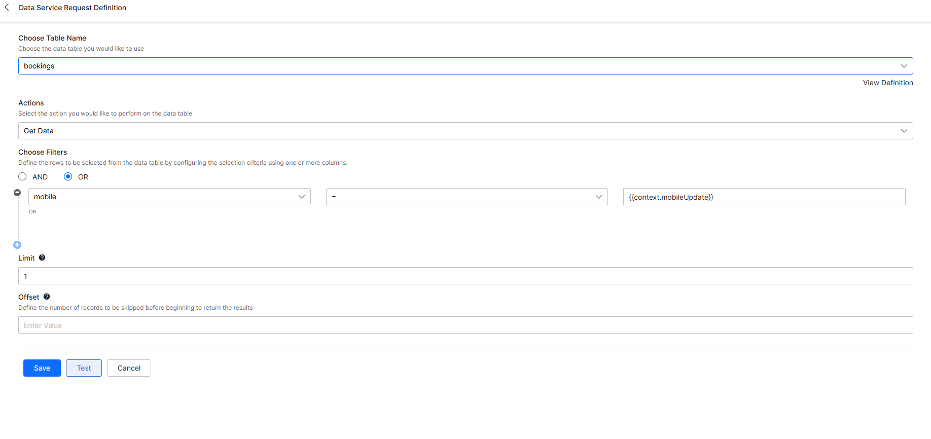 but if i used any other thing like context.mobile and so on i don’t get anything maye the problem is in the filter inside the get service or the logic inside the connection