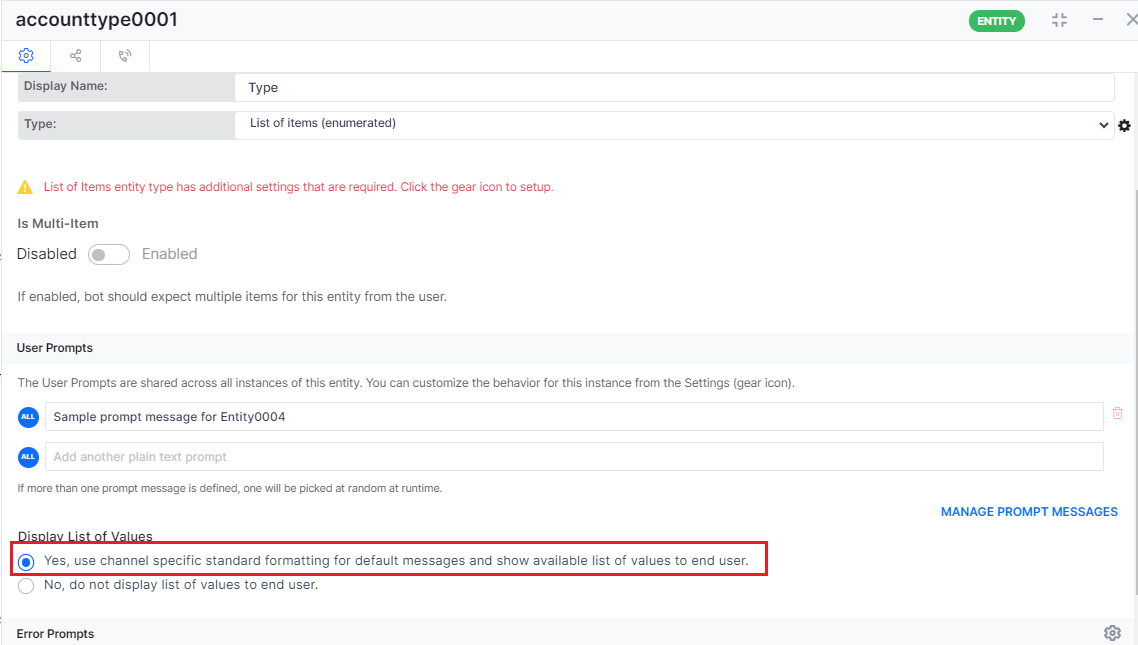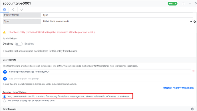 1- For your initial post on handling the responses on the entity prompt, please let us know if the solution provided by us suffices the requirement.