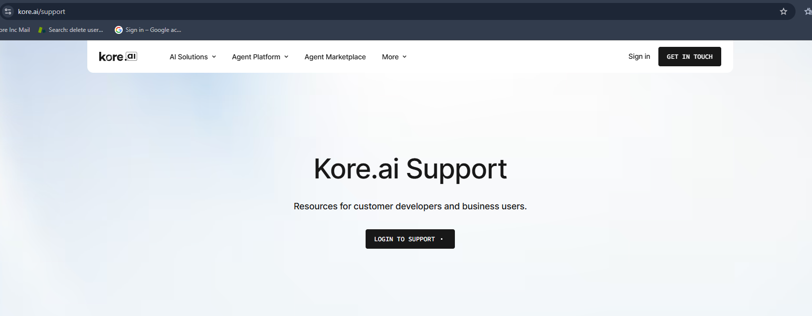 Users can navigate to Self-Service Product Support | Kore.ai Help Center - Kore.ai and click on the button “LOGIN to SUPPORT”