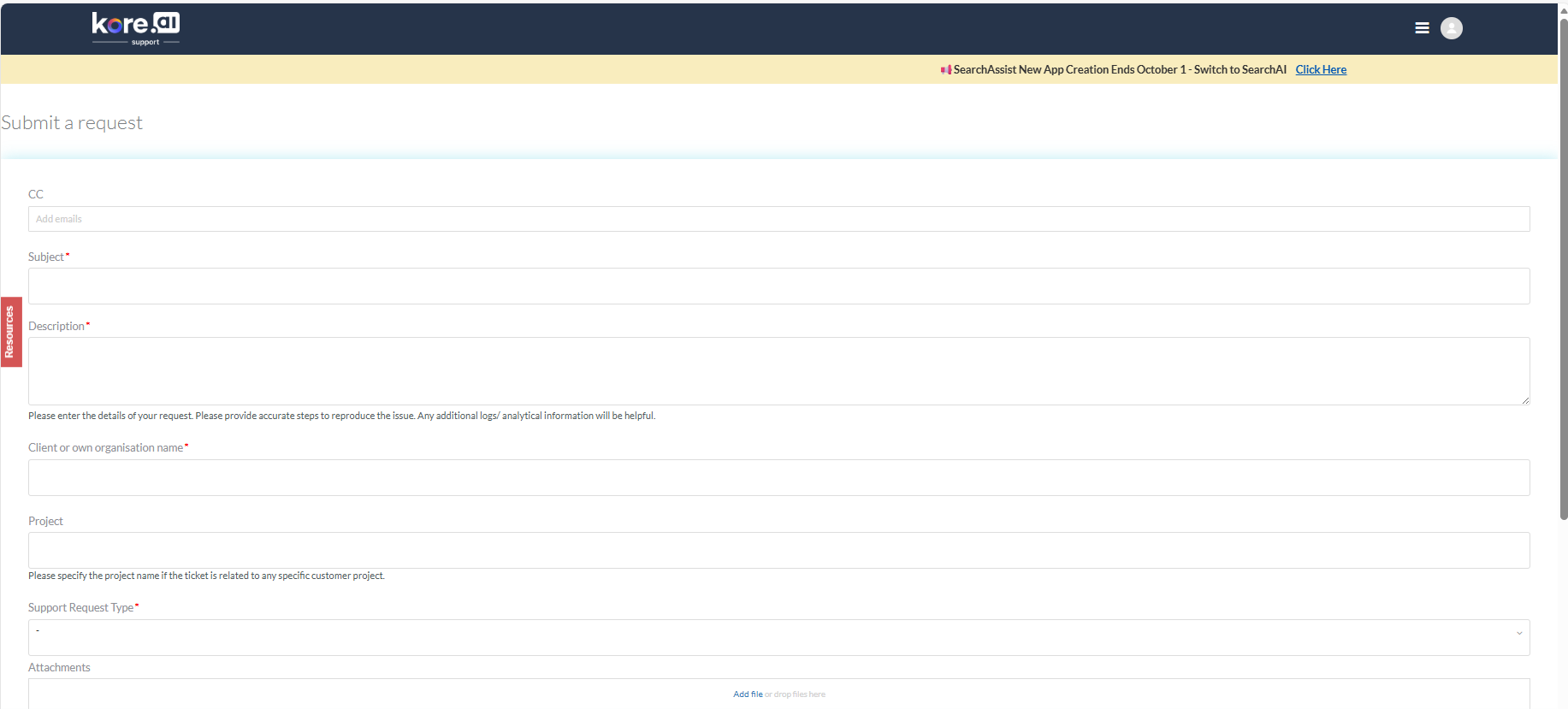 - Users will be redirected to the Support Portal ( https://support.kore.ai/ )