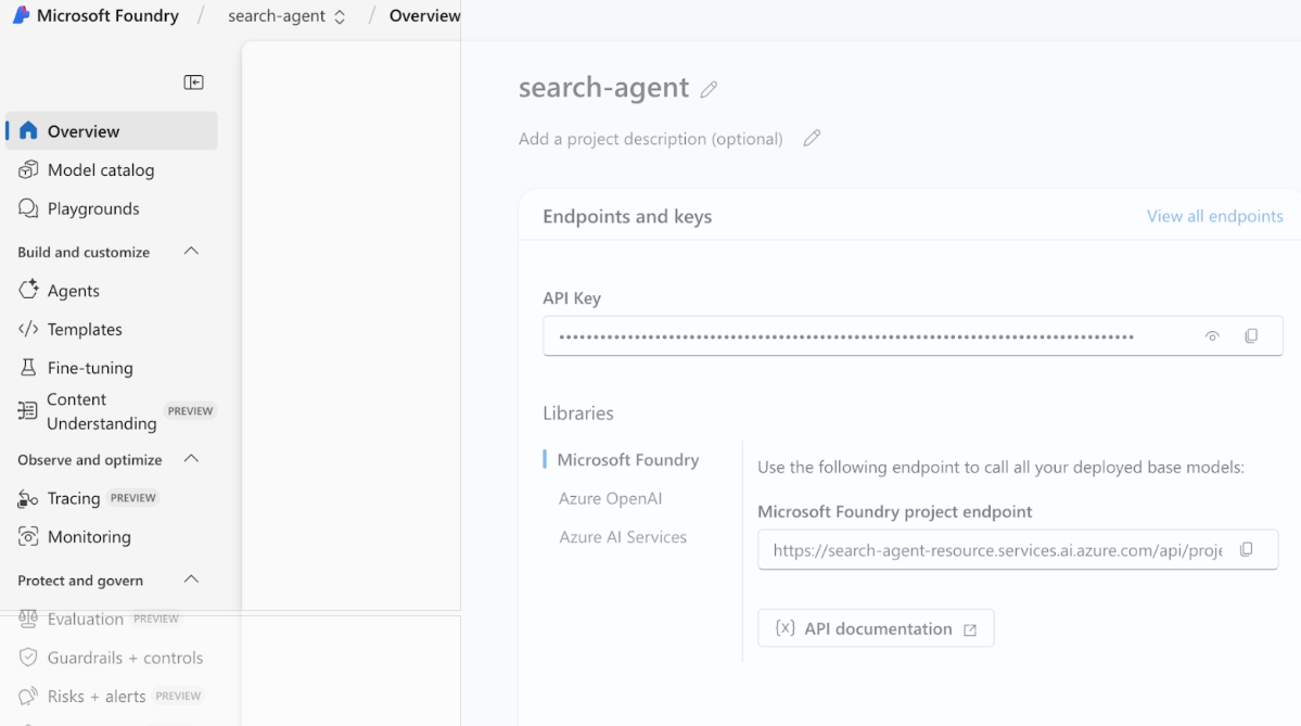 - Interact with the grounded agent programmatically using REST APIs (Threads, Messages, Runs).