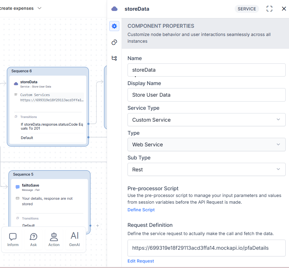 Create a service node to send the saved variables’ data to an endpoint.
