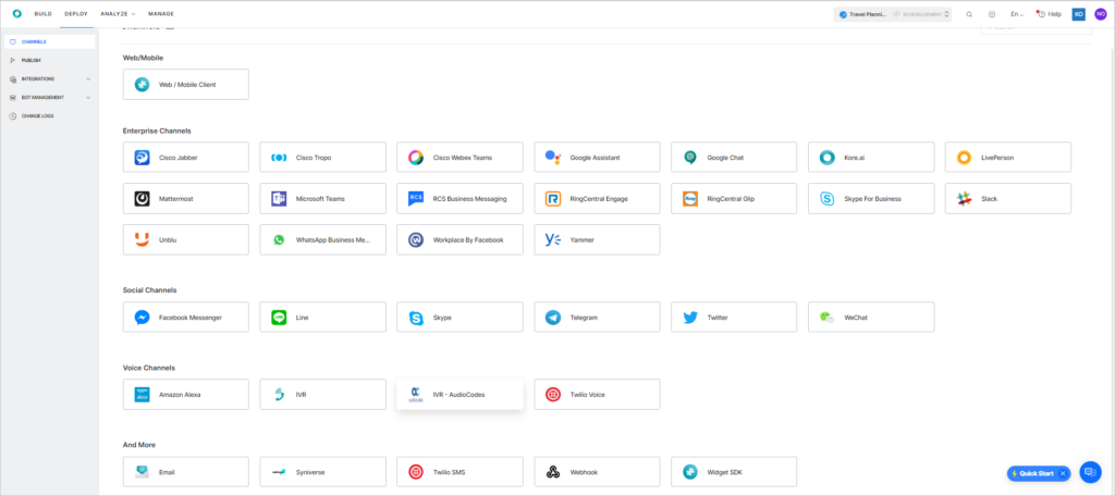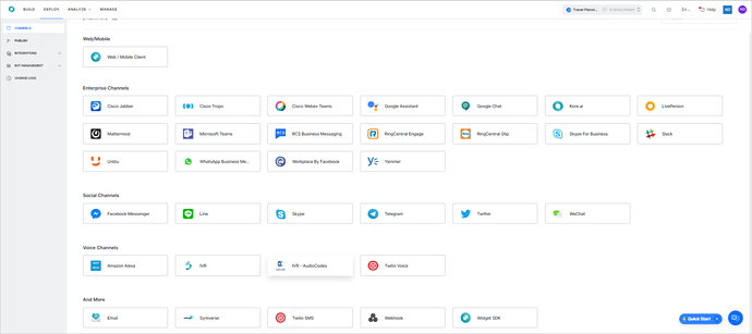 Appreciate it if you could kindly follow the below documentation that talks about the available channels in the platform: